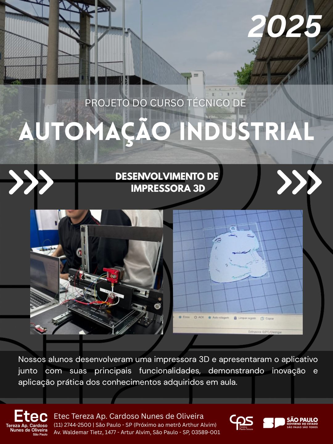 Nossos alunos desenvolveram uma impressora 3D e apresentaram o aplicativo junto com suas principais funcionalidades, demonstrando inovação e aplicação prática dos conhecimentos adquiridos em aula.