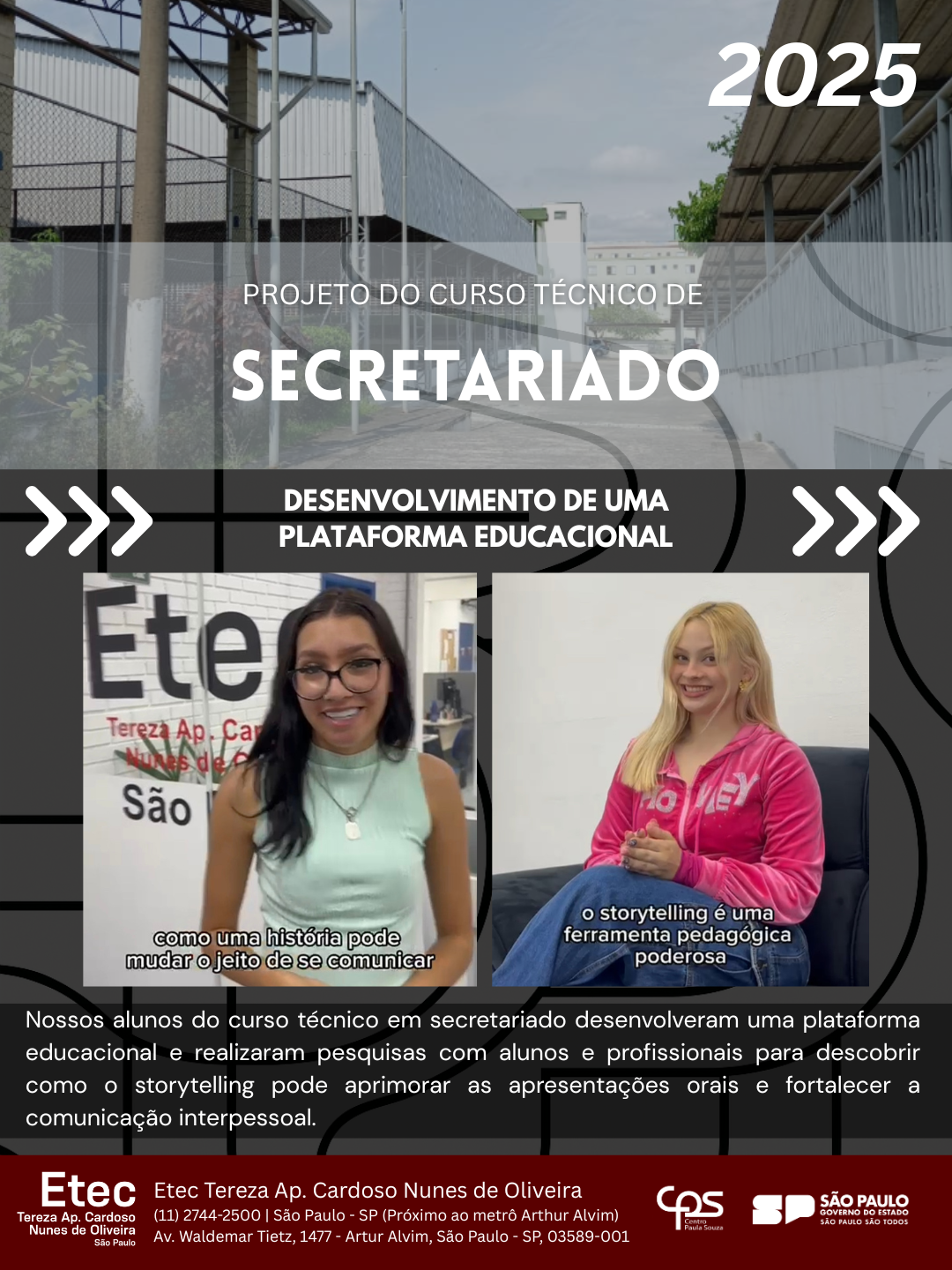 Nossos alunos do curso técnico em secretariado desenvolveram uma plataforma educacional e realizaram pesquisas com alunos e profissionais para descobrir como o storytelling pode aprimorar as apresentações orais e fortalecer a comunicação interpessoal.